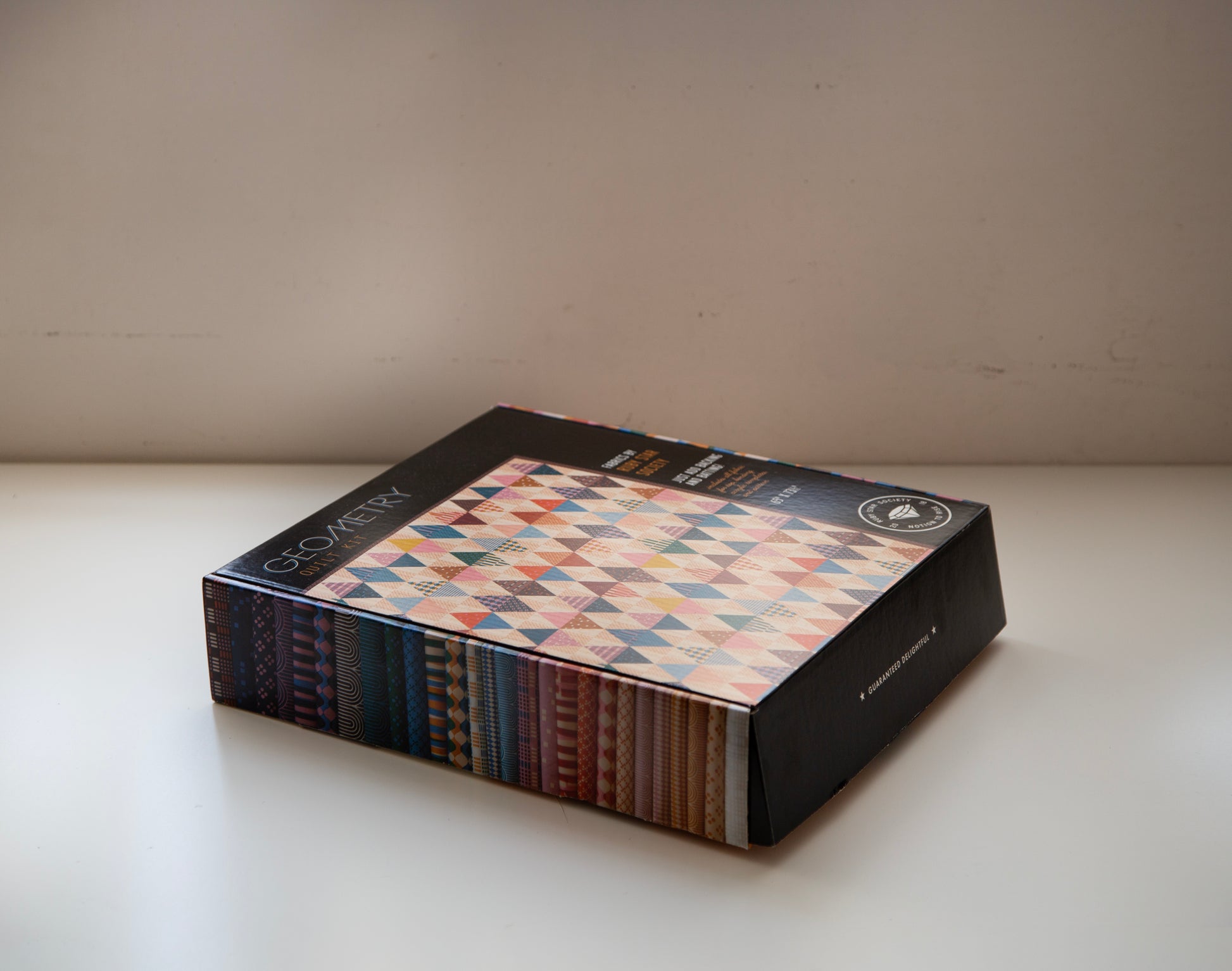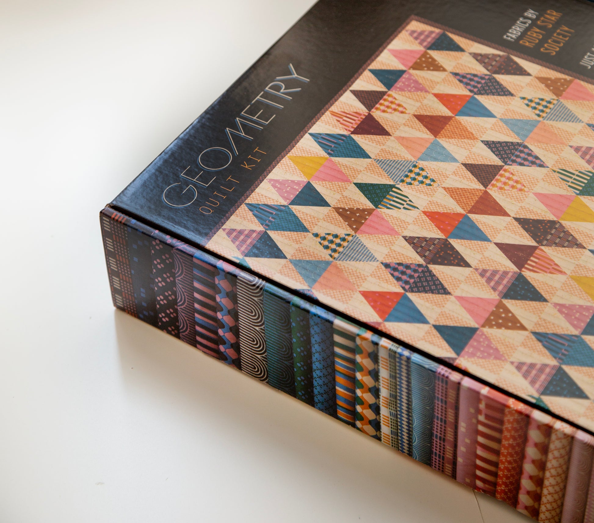 With the release of the Geometry collection, we thought there was no better time to use…geometry, to create a quilt using all triangles that is full of mid-century modern vibes! Follow our layout for a simple yet stunning design. Hold on to our acrylic rulers to make more Geometry quilts in the future!"